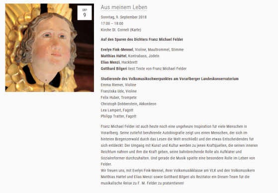 Evelyn Fink-Mennel, Elias Menzi, Matthias Härtel und Studierende des Schwerpunktes Volksmusik auf musikalischer Spurensuche, Text: Gotthard Bilgeri